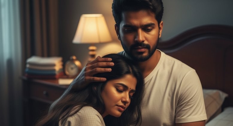 കഞ്ഞി കൊടുത്ത് കഴിഞ്ഞു ഗുളിക വായിൽ വെച്ച് കൊടുത്തപ്പോൾ വിവേക് അറിയാതെ വിതുമ്പി പോയി….അവൻ അവളുടെ കൈകൾ കൂട്ടപ്പിടിച്ച് അതിൽ ചുംബിച്ചു…. അവളുടെയും കണ്ണുകൾ നിറഞ്ഞു ഒഴുകി… പനിച്ചൂട് ഉള്ള അവന്റെ നെറ്റിയിൽ അവള് മൃതുവായി ചുംബിച്ചു…അവനെ പുതപ്പിച്ചു കിടത്തി അവള് മുറി അടച്ചു പുറത്ത് പോയി..